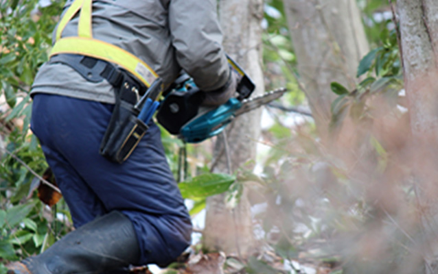 樹木の状態や作業場所に応じて適切な機材・方法を選定。大木や枯れ木、高所の対応も可能です。伐採後の処理もおまかせください。 -