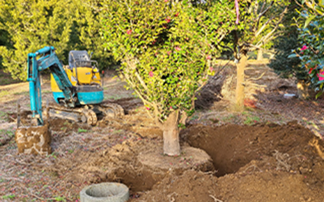 庭木や、台風などで倒れてしまった街路樹の植替えなど、さまざまな場所での植樹をします。伐採・抜根と組み合わせての作業も、もちろん対応可能です。